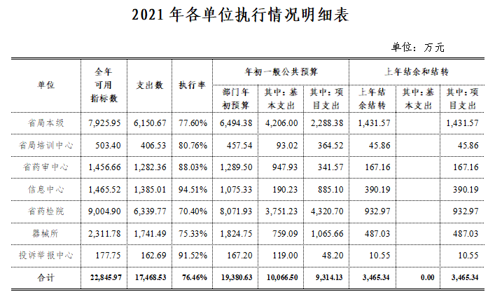 AG真人2021年一般公共预算全年可用指标22,845.97万元,其中:年初预算指标19,380.63万元,上年结余指标3,465.34万元,全年支出17,468.53万元,执行率为76.46%,各单位执行明细如下: